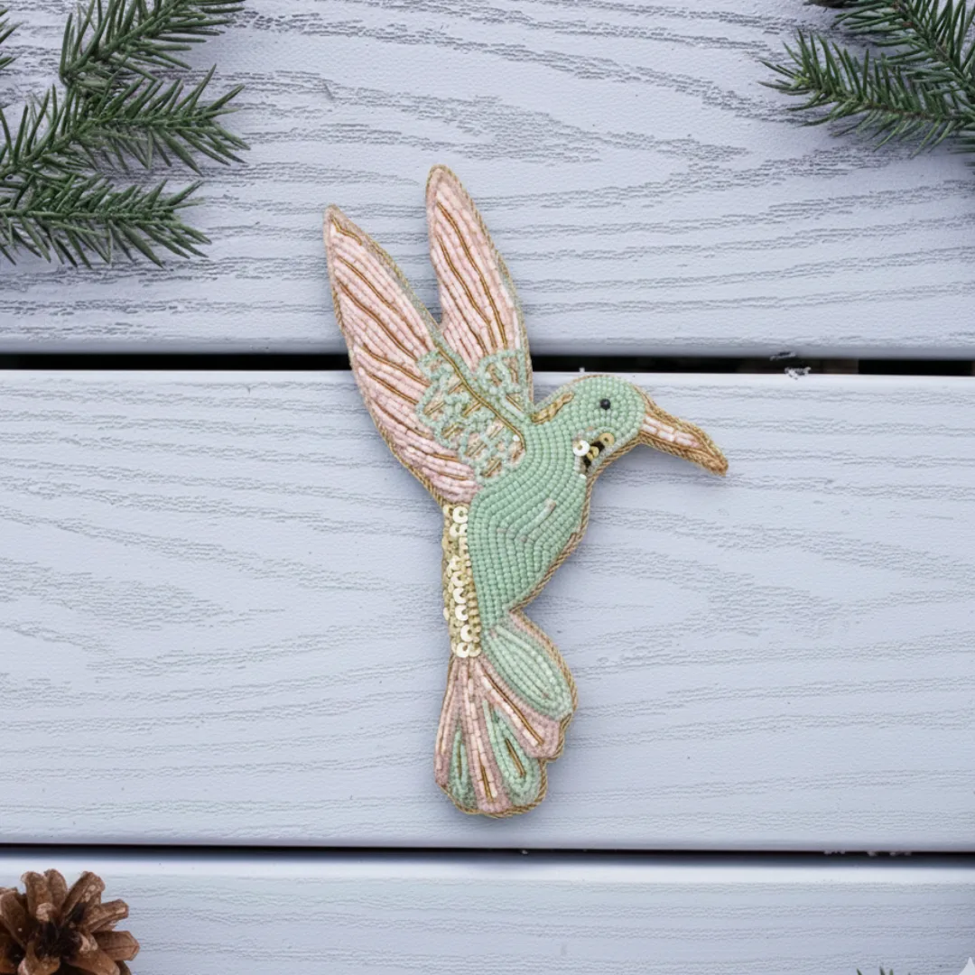 - Delicate Hovering Design: Depicts a hummingbird in mid-flight with upward-spread wings, long slender beak, and a single black bead eye for lifelike charm.