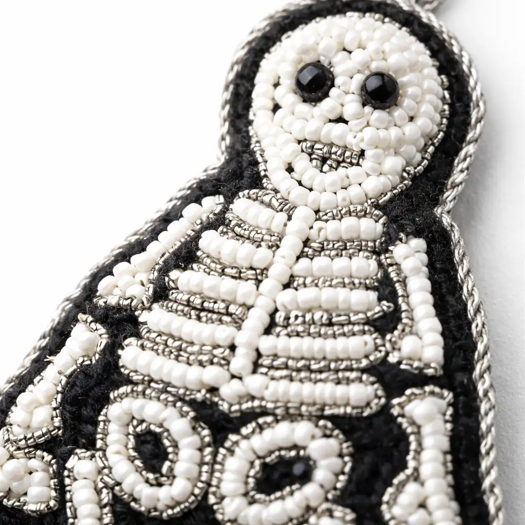 Intricate Skeleton Bead Design – Detailed white beadwork forms defined bone patterns against a bold black outline.