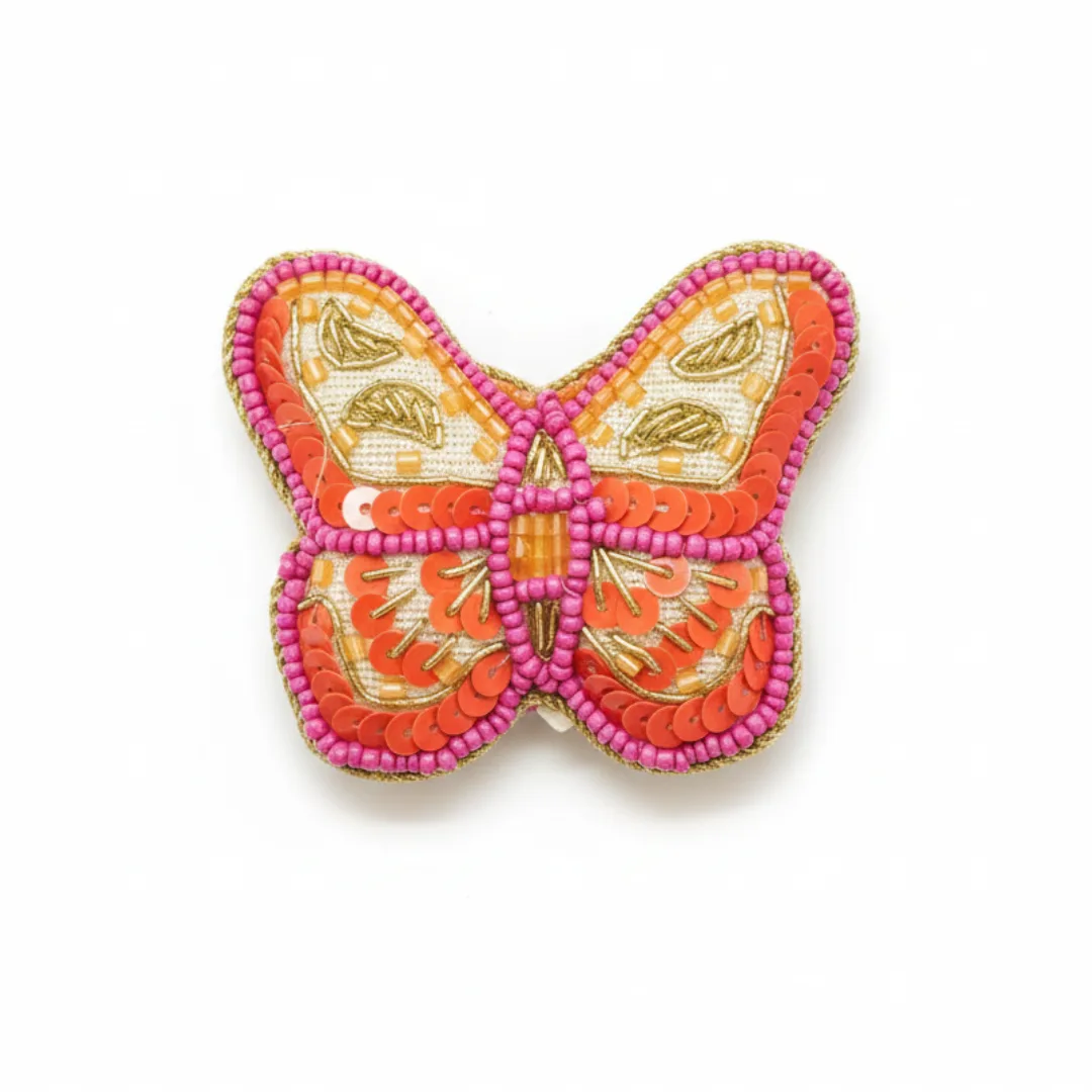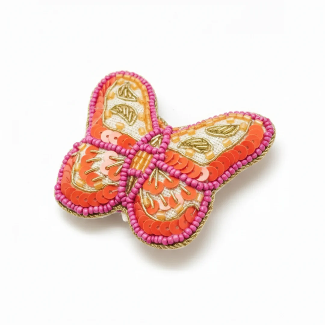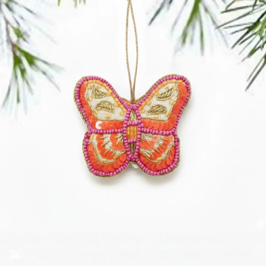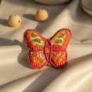 Orange butterfly ornaments bring brightness, positivity, and artistic charm to any décor setting. This handcrafted beaded butterfly is carefully designed using vibrant orange, pink, and gold tones, creating a rich and eye-catching decorative accent. Detailed bead embroidery, sequins, and threadwork highlight the wings beautifully, giving the ornament a premium handcrafted finish. Its symmetrical butterfly shape symbolizes transformation and joy, making it perfect for festive décor, gifting, or everyday styling.