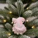The pink beaded bird is a beautifully handcrafted decorative ornament designed to bring softness, elegance, and artisanal charm into any space. Made using intricate hand-sewn beadwork, sequins, and delicate embroidery, this ornament reflects skilled craftsmanship and attention to detail. The soothing pink color adds a graceful touch, making it ideal for festive décor, children’s rooms, Christmas trees, or as a thoughtful handmade gift. Every element—from the layered sequins to the pearl-style detailing—creates a rich texture that feels premium and timeless.