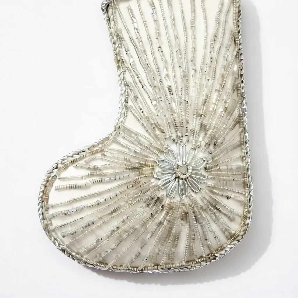 Christmas ornament decorations are becoming an essential element for modern holiday styling, festive gifting and themed home décor. This silver beaded Christmas ornament sock offers a unique combination of craftsmanship, aesthetic value and functional versatility. The ornament features meticulous beadwork with metallic accents that elevate its visual appeal, making it suitable for Christmas trees, wreaths, mantle displays, door hangings, event decoration and gifting arrangements.